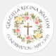 Pegatina Redonda Confirmación rosada floral del crucifijo de los