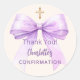 Pegatina Redonda Confirmation lavender bow ivory cross thank you