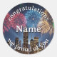 Pegatina Redonda Congratulations Custom Name Fireworks City Skyline
