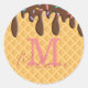 Pegatina Redonda Cono De Helado Con Escarcha De Chocolate Y Espolvo
