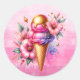 Pegatina Redonda Cono de helado rosado y dorado de bonito