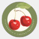 La etiqueta redonda clásica y elegante presenta un diseño moderno de cerezas rojas con texto personalizable que se muestra en un banner redondo verde. Se muestra con un mensaje personalizable de "conservas de cereza" del cocinero en una fuente moderna en un borde redondo complementario, puede personalizar utilizando los campos proporcionados. Ideal para etiquetar su jalea casera, conservas o mermelada, o usar para cocinar, enlatar, regalos de cocina casera o decoración.