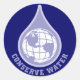 La tierra dentro de una gran gota de agua y la leyenda Conserva el agua disponible en camisetas del Día de la Tierra, Botones del Día de la Tierra, Mousepads ecológicos, tazas de conservación y más regalos.