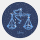 Pegatina Redonda Constelación de Libra y Rótulo Zodiaco con estrell