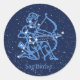 Pegatina Redonda Constelación de Sagittarius y Rótulo de Zodiac con