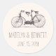 Diseñados para coincidir con nuestra suite de invitados a la boda Construida para dos, estos pegatinas peculiares y encantadores cuentan con un ilustracion de bicicleta tándem de estilo vintage en tonos sepia oscuros, con sus nombres y fecha boda debajo.