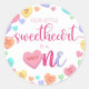 Pegatina Redonda Conversación Corazones Primer Cumpleaños