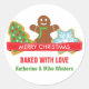 © 2015 Socialite Designs. Selle sus productos horneados de vacaciones con este lindo y personalizable Feliz texto navideño y el diseño de Cocina de Navidades. Las galletas incluyen un hombre de jengibre, un árbol de Navidad y un copo de nieve.