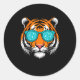 Pegatina Redonda Cool Shirts For Boys Kids, Funny Tiger Sungles