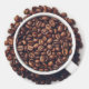 Pegatina Redonda Copa blanca llena de granos de café tostados