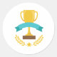 Cinta de título en blanco con vaso de premio y corona de laurel.