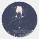Pegatina Redonda Copas de champán rosa, ducha nupcial holográfica