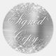 Crea tus propios pegatinas pegatinas de "copia firmada" con un romántico purpurina plateado y un falso Relieve metalizado metálico. El diseño se imprime como una foto, o un falso purpurina. Se puede personalizar el color del texto y del fondo. Tipo clásico de letra de guión de caligrafía sofisticada.