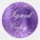Crea tus propios pegatinas pegatinas de "copia firmada" con un romántico purpurina morado y un falso Relieve metalizado metálico. El diseño se imprime como una foto, o un falso purpurina. Se puede personalizar el color del texto y del fondo. Tipo clásico de letra de guión de caligrafía sofisticada.