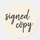 Un sencillo diseño personalizado de "copia firmada" en la moderna tipografía manuscrita minimalista en un estilo informal informal en negro sobre fondo de marfil. ¡El accesorio perfecto para la firma de libros para cualquier autor o escritor! #signedcopy #pegatina #autor