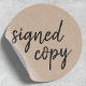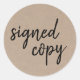 Un sencillo diseño personalizado de "copia firmada" en la moderna tipografía manuscrita minimalista en un estilo informal informal en negro sobre un fondo rústico kraft. ¡El accesorio perfecto para la firma de libros para cualquier autor o escritor! #signedata #pegatina #writer #rústico