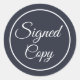 Pegatinas de copia firmada personalizables. Mostrado en blanco y negro de la marina. El texto se puede personalizar completamente en el menú de personalización. El tipo de letra y el fondo pueden cambiarse a cualquier color que desee. Visite nuestra tienda para una variedad de pegatinas y otros artículos de marca de negocios de diseño.