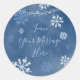 Invierno azul blanco Copo de nieve Amar tu mensaje Aquí Ducha de novia Pegatina redondo clásico Todo el texto puede ser personalizado