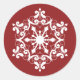 Pegatina Redonda Copo De Nieve Blanco Sobre Rojo Crimson