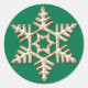 Pegatina Redonda Copo de nieve dorado en feriado verde