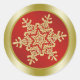 Pegatina Redonda Copo de nieve dorado en Navidad roja