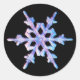 Icy, iridiscente, rosa, azul y blanco copo de nieve, vívido sobre un fondo negro
