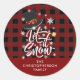 Pegatina Redonda Copos de nieve a cuadros de Búfalo Caprichoso DEJA