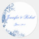 Pegatina Redonda Copos de nieve azules en fondo blanco