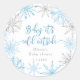 Pegatina Redonda Copos de nieve de plata azul bebé su frío afuera