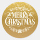 Con nieve cayendo sobre un elegante diseño de Feliz Navidad en un fondo dorado. Diseñado por Thisisnotme©