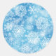 Pegatina Redonda Copos de nieve en azul