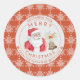 Pegatina Redonda Copos de nieve rojos blancos Feliz Navidad Santa
