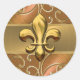 Pegatina Redonda Copper y Gold Filigree Swirls Fleur de Lis