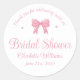 Etiqueta de agradecimiento de la despedida de soltera con estética coqueta con un lazo rosa. Personalízala con el nombre de la futura novia y la fecha de la fiesta.
