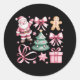 Pegatina Redonda Coqueta rosa cúrcuma árboles navideños de Santa Cl