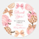 Pegatina Redonda Coquette Pink Bow Pumpkin Baby Shower Gracias