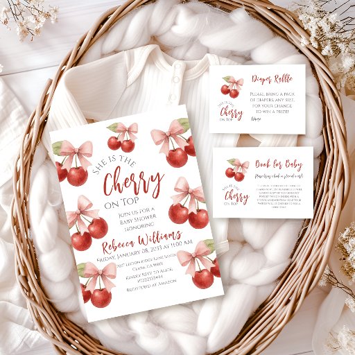 Coquette Pink Bow Red Cherry on Top Baby ShowerDiseñado por Tetiana Domushkina