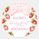 Pegatina Redonda Coquette Strawberry Primer cumpleaños