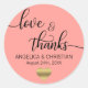 Pegatina Redonda CORAL Peach Gold LOVE & GRACIAS Boda