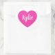 Este pegatina redondo se muestra con una forma de corazón rosa lindo con un nombre de ejemplo, personalizar este elemento y cambia el nombre de ejemplo al tuyo con esta plantilla.