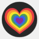 El corazón del arcoiris colorido presenta corazones concéntricos que comienzan con rojo, luego naranja, amarillo, verde, azul y violeta en el centro sobre un fondo negro. Celebra tu orgullo LGBTQ, tu apoyo o amor por los arcos de lluvia con estilo para decorar tus regalos y equipo. Copyright ©Claire E. Skinner, todos los derechos reservados.