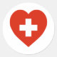 Pegatina Redonda Corazón de bandera de Suiza