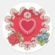 Pegatina Redonda Corazón de flores de San Valentín antiguo