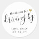 Etiquetas/redondas adhesivas personalizadas para baby shower/ despedida de soltera/ graduación con "Gracias por pasar" en caligrafía moderna a mano con diseño de corazón brillante dorado.