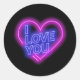 Pegatina Redonda Corazón de San Valentín azul rosa brillante neón