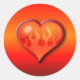 Pegatina Redonda Corazón en llamas ardiente