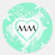 Pegatina Redonda Corazón monogramado verde de menta pastel