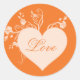 Pegatina Redonda Corazón naranja y Rosas aman a los Pegatinas