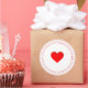 Pegatina Redonda Corazón rojo en el Círculo de encaje medio