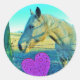 Pegatina Redonda Corazón rosa y caballo amarillo